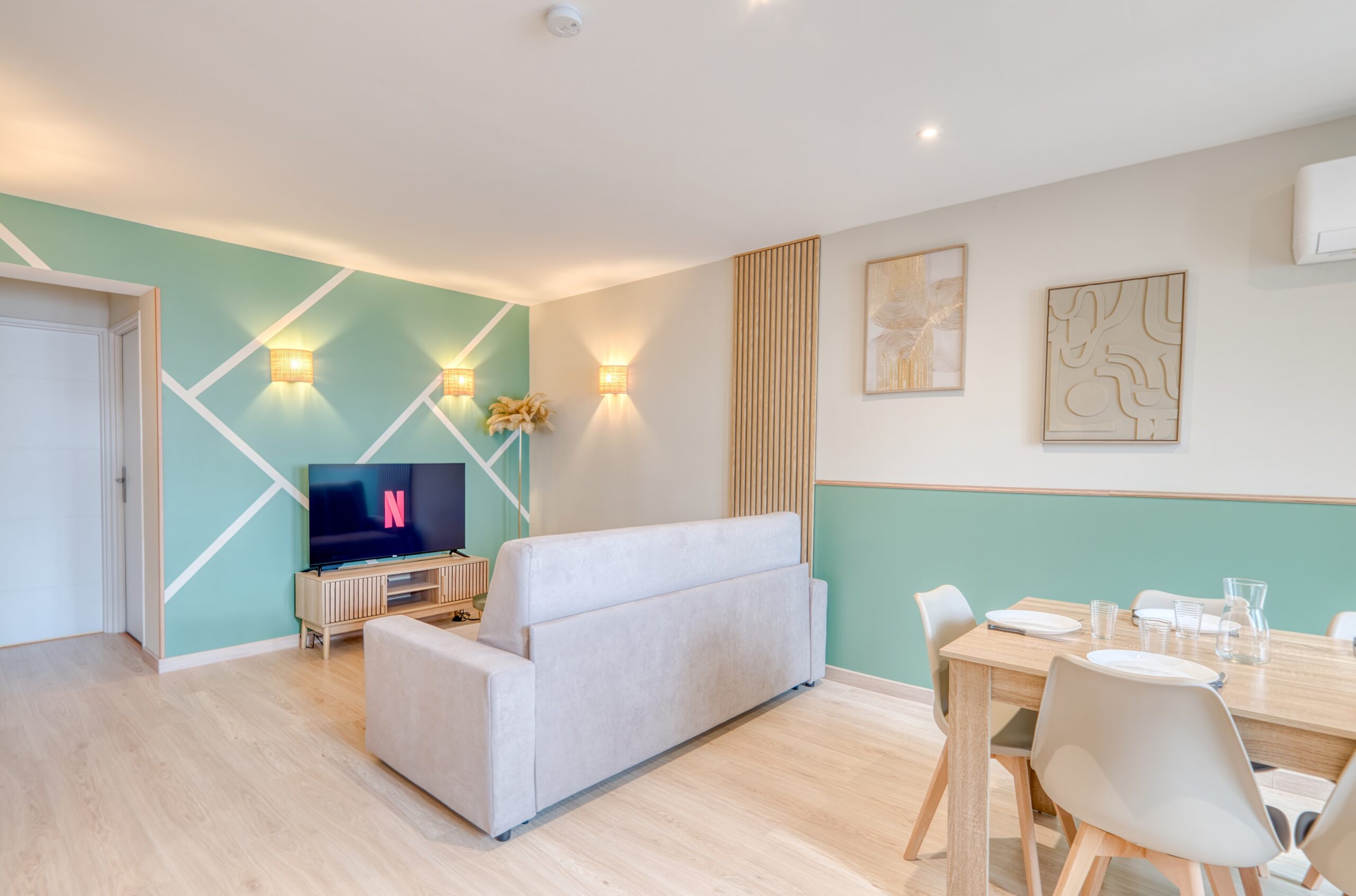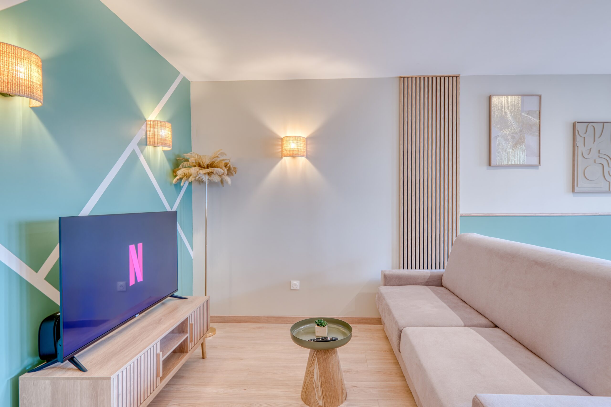 L’appartement, cosy, calme et baigné de lumière, est idéal pour un séjour professionnel ou touristique.
